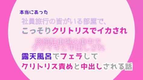 TL同人 【フル漫画】本当にあった、社員旅行の皆がいる部屋でこっそりクリトリスでイカされ、旅館駐車場の車中でクリイキと中出しされ、露天風呂でフェラしてクリトリス責めと中出しされる話|蜜麦苗|【女性向け】